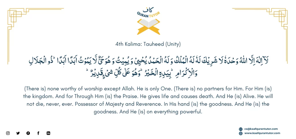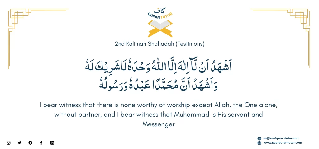 Translation: I bear witness that there is none worthy of worship except Allah, the One alone, without partner, and I bear witness that Muhammad is His servant and Messenger